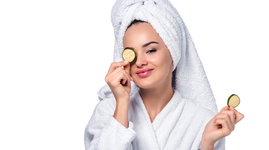 You can soothe stuffy and tired eyes with cucumber slices. Cucumbers are rich with water content, and this will help you brighten up your tired eyes. It can even help in reducing dark circles beneath the eyes and under-eye puffiness. All you have to do is to cut a few thick slices off a cucumber and put them in the refrigerator for 10 to 15 minutes. Then place these chilled slices over your closed eyelids until they become warm. Repeat this often and see visible changes.